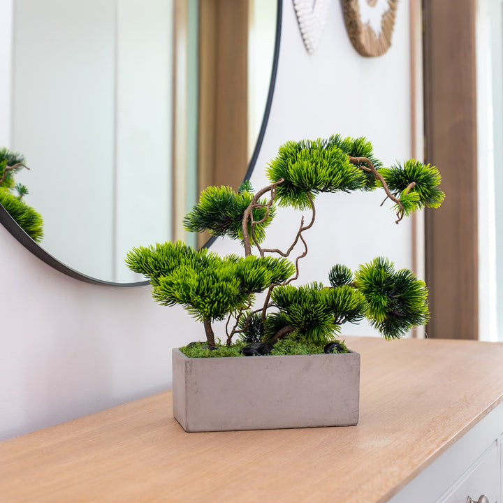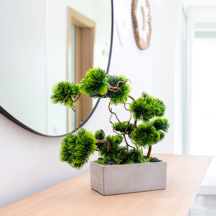 Add a touch of modern elegance to your home or office with this exquisite artificial bonsai tree. The hand-crafted imitation branches and lush green coniferous branches perfectly replicate the aesthetics of a real bonsai tree, but require no maintenance.