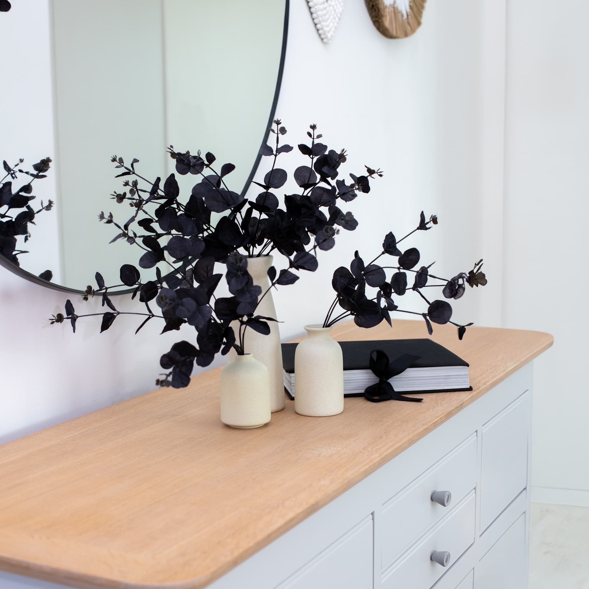 Add a subtle mystery and modern aesthetic to your interior or garden with this artificial black eucalyptus bouquet.