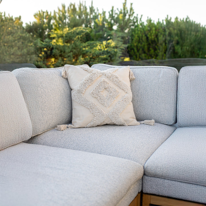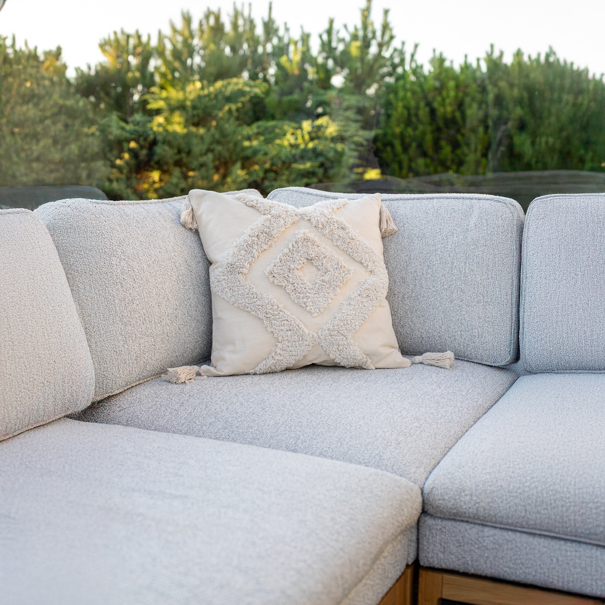 Bring warmth and style to your home with these light decorative cushions. Made from soft, pleasant-to-the-touch cotton fabric, the cushions are adorned with subtle textured diamonds and tassels at the corners, adding lightness and playfulness to your interior. The neutral sandy shade easily complements a variety of interior styles – from modern to bohemian.